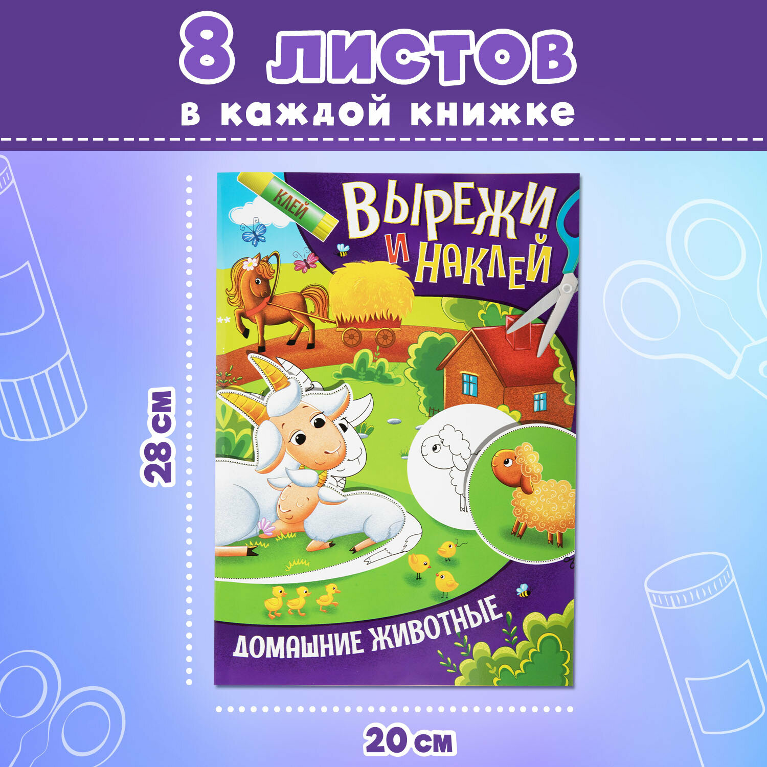Аппликации-вырезалки для детей Вырежи и наклей набор 4 штуки, развивающие книги для малышей, А4 195х276мм, 16 страниц, ПП, 691096 информация: