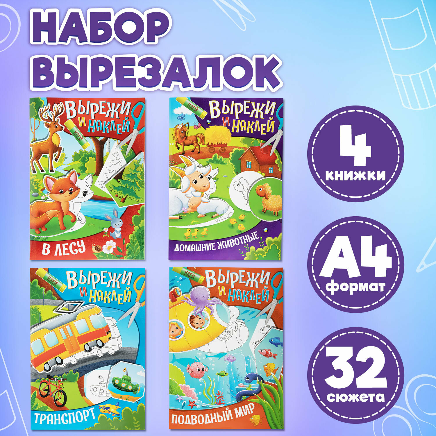 Отзывы на Аппликации-вырезалки для детей Вырежи и наклей набор 4 штуки, развивающие книги для малышей, А4 195х276мм, 16 страниц, ПП, 691096