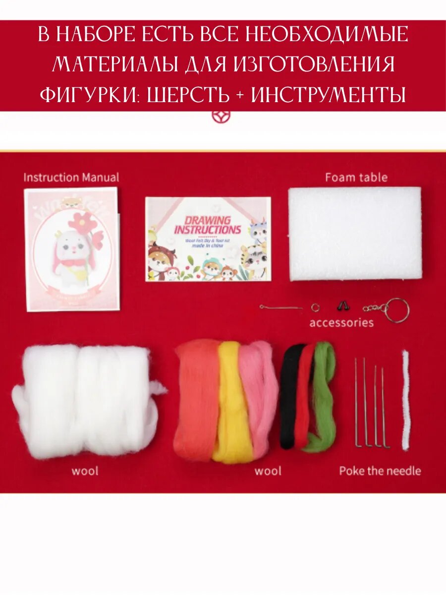 Набор для валяния Magia Hobby "Заяц", шерсть, иглы, подставка, инструкция информация: