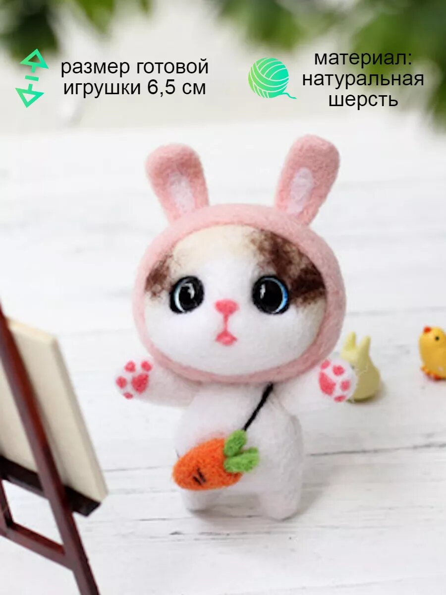 Набор для валяния Magia Hobby "Кот-кролик", шерсть, иглы, подставка, инструкция информация: