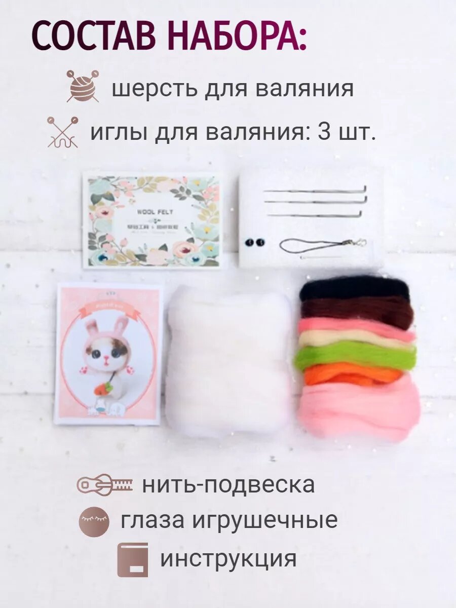 Набор для валяния Magia Hobby "Кот-кролик", шерсть, иглы, подставка, инструкция 678 ₽