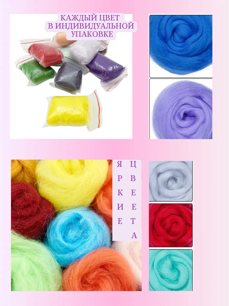 Отзывы на Набор для самостоятельного валяния Magia Hobby 40 цветов шерсти, шерсть, иглы, подставка,
