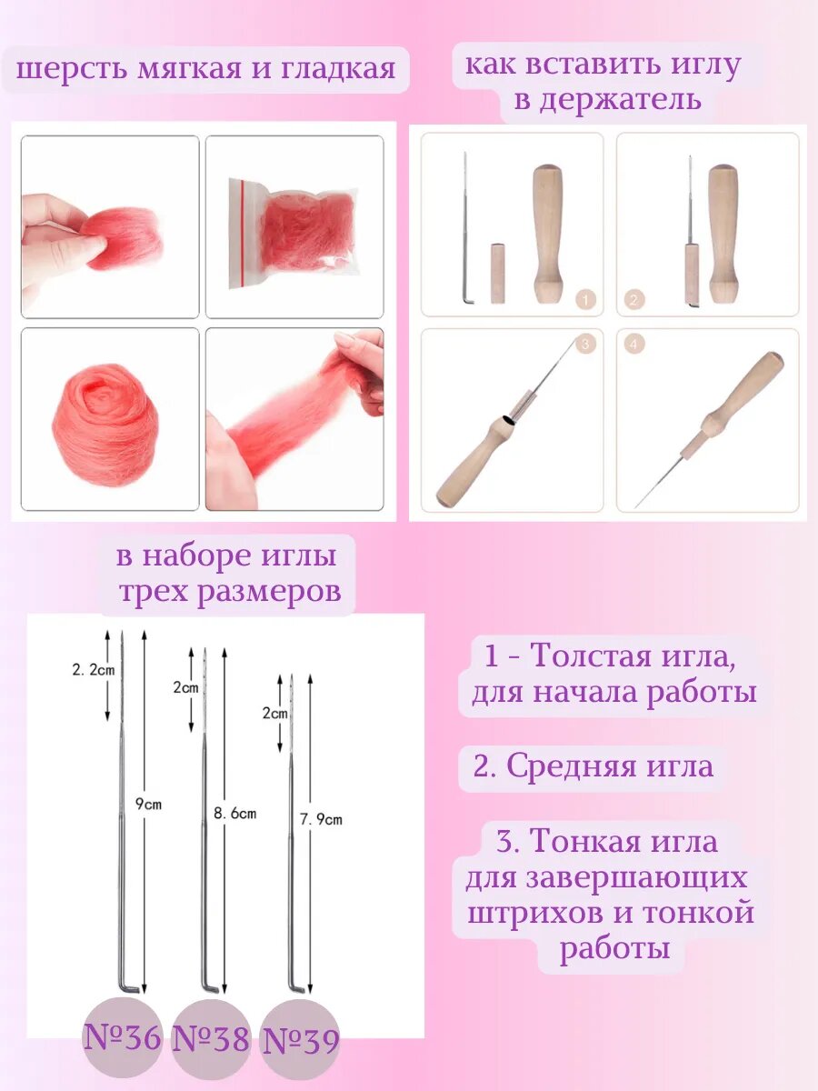 Отзывы на Набор для самостоятельного валяния Magia Hobby 10 цветов, шерсть, иглы, подставка
