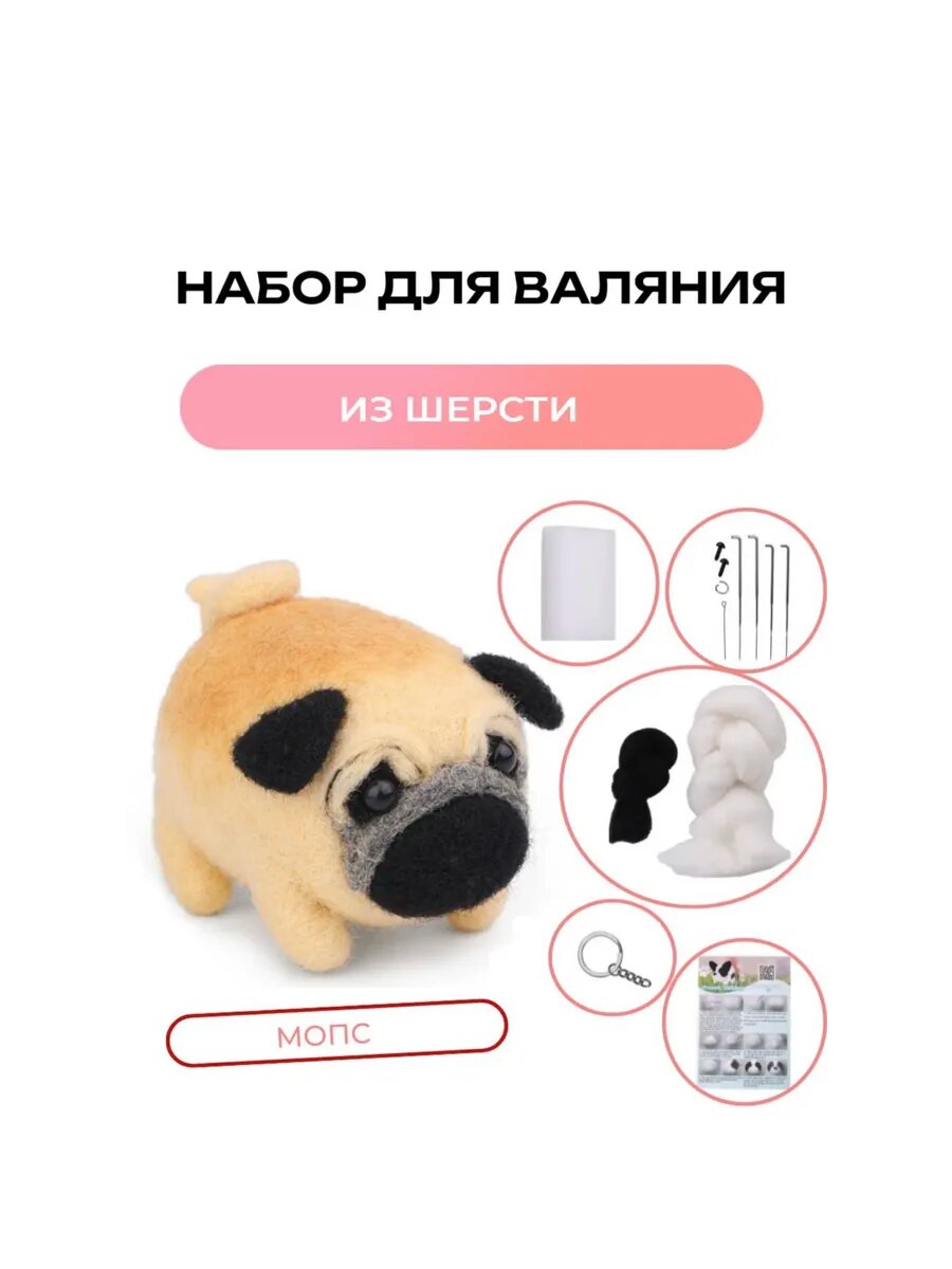 10 цен на Набор для творчества. Валяние из шерсти. Фелтинг. Мопс.