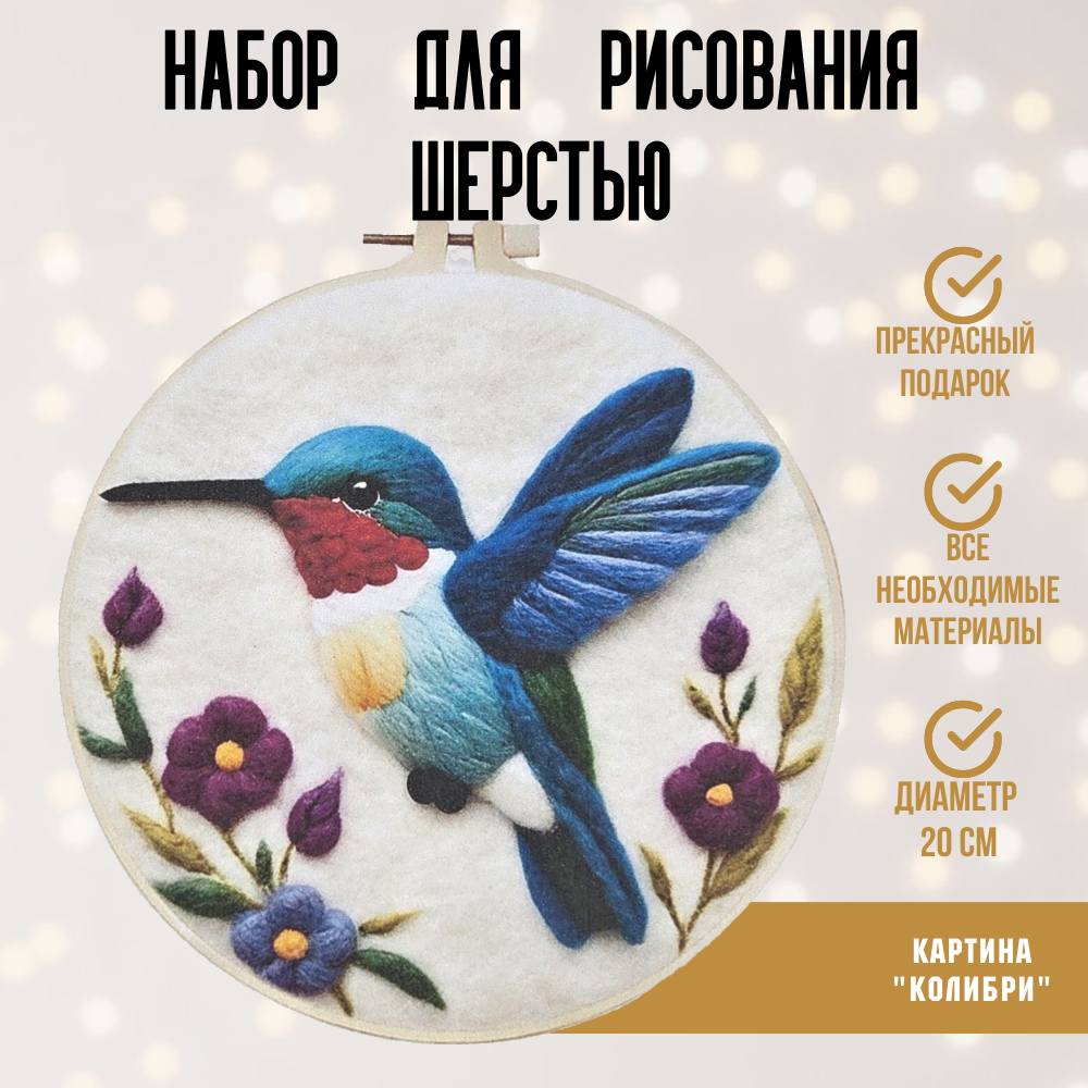 Набор для рисования (валяния) шерстью «Колибри», диаметр 20 см информация: