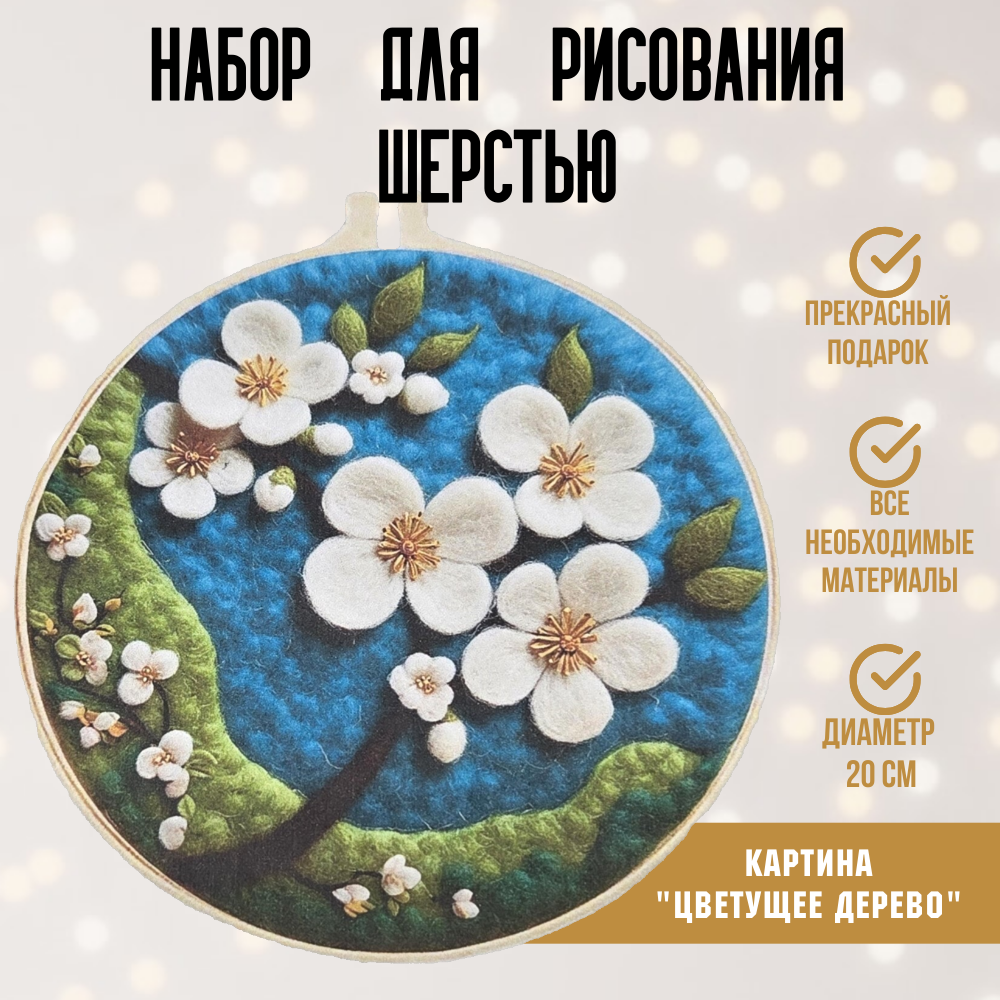 10 цен на Набор для рисования (валяния) шерстью «Цветущее дерево-1», диаметр 20 см