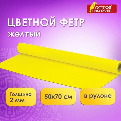 Цветной фетр мягкий 500х700 мм, 2 мм, плотность 170 г/м2, рулон, желтый, остров сокровищ, 660629 информация: