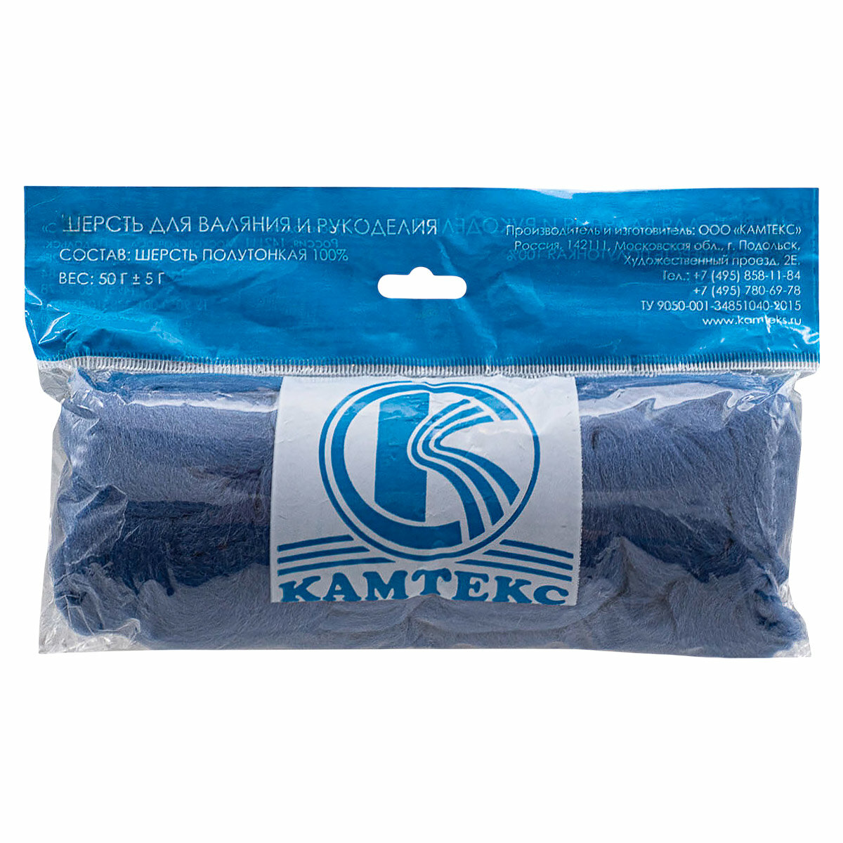 Лента для валяния полутонкая Камтекс, 100% шерсть, 50 г (022 джинса) информация: