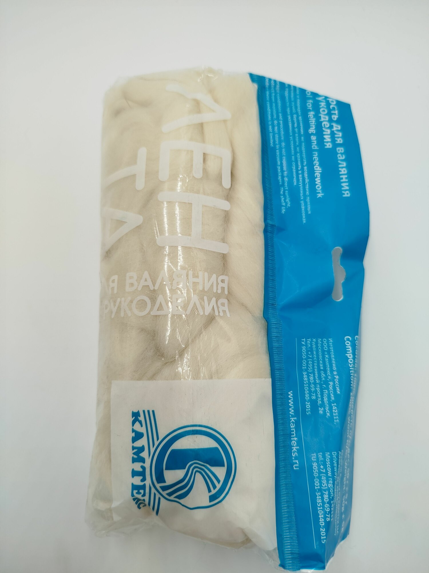 Шерсть 100 % для валяния , цв. белый 205, Камтекс,50 гр.-1 шт. 344 ₽