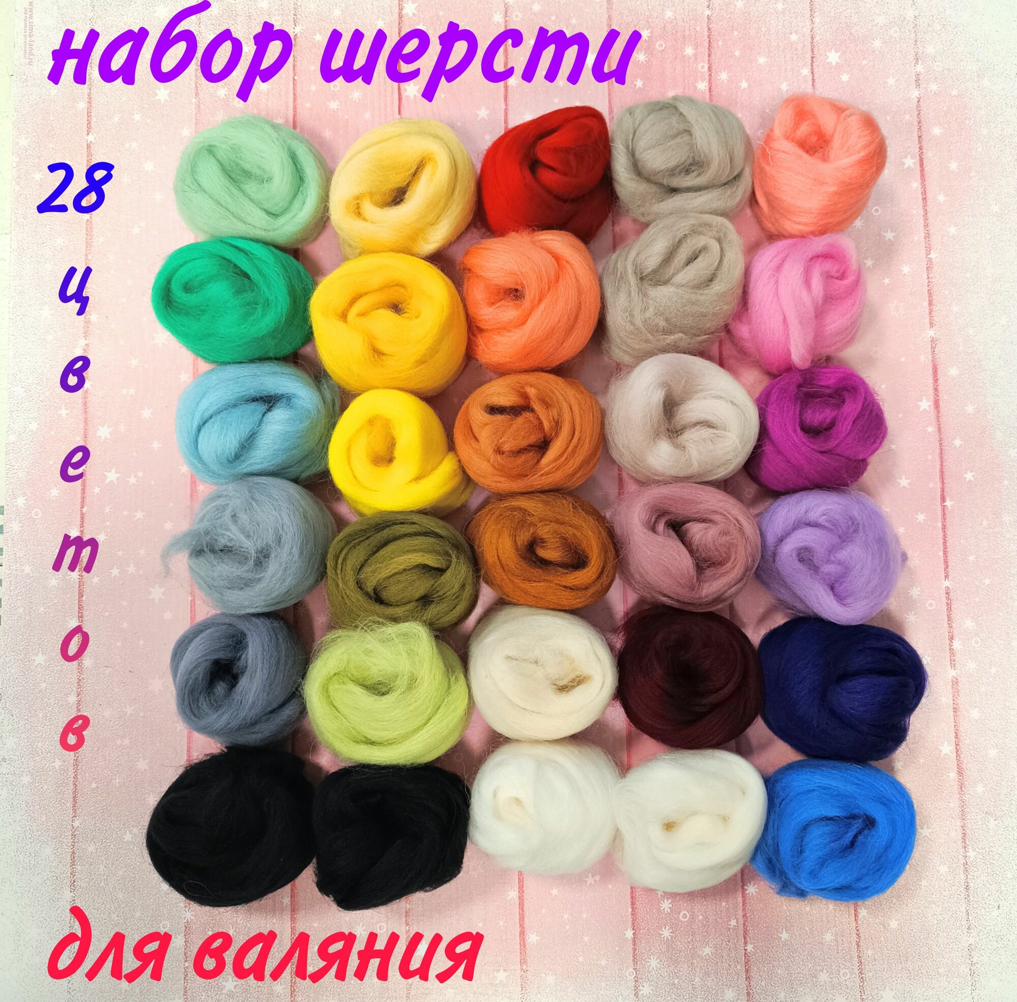 10 цен на Шерсть для валяния / Набор для валяния из шерсти, 28 цветов, 150 г, для творчества, рукоделия, фелтинга