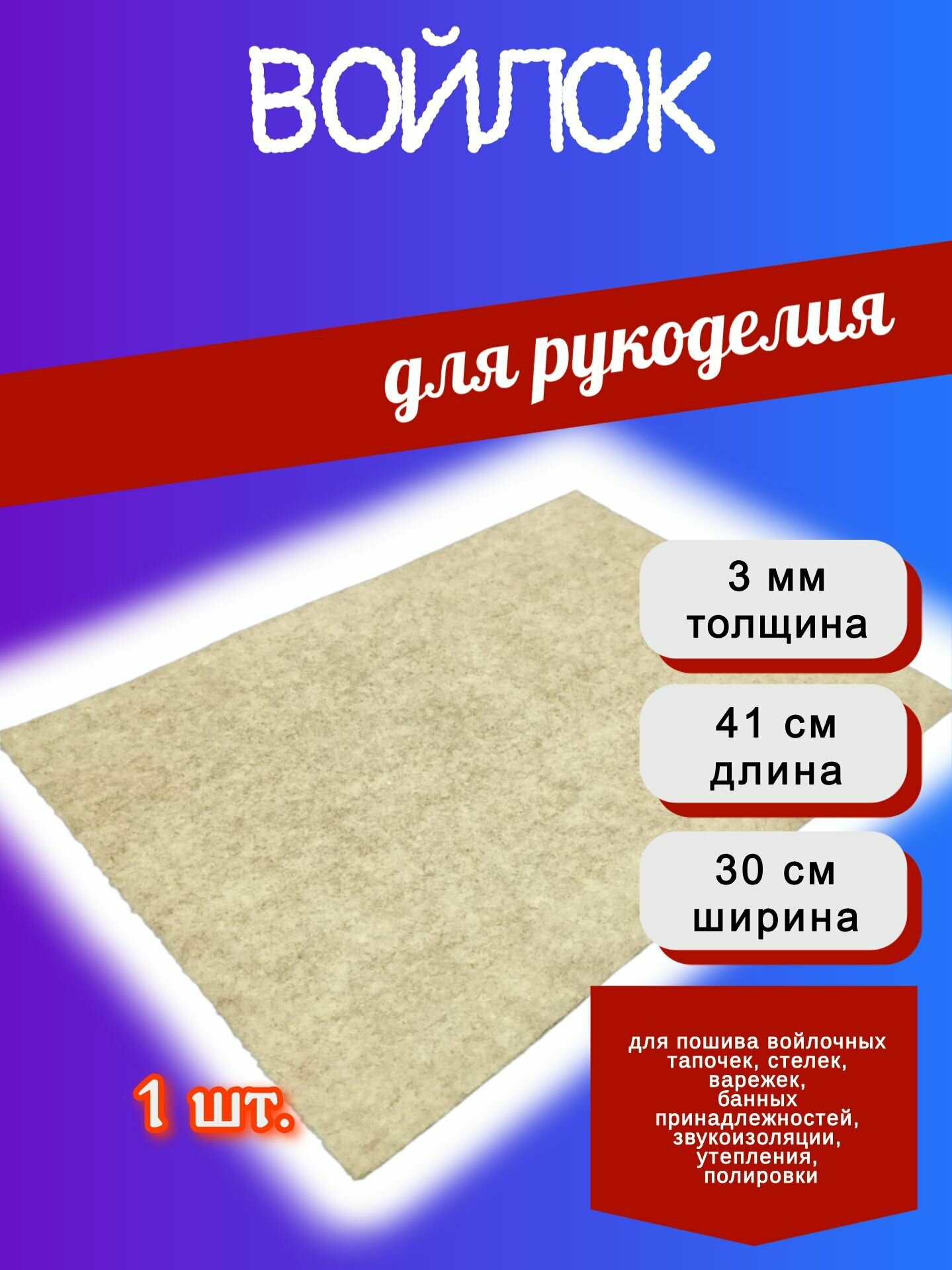 Отзывы на Войлок плотный серый натуральный 3 мм лист,41 см х 30 см, 1 шт.