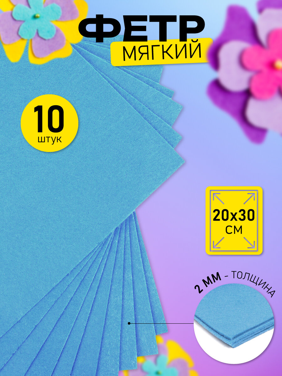 10 цен на Фетр листовой мягкий Magic 4 Hobby 2мм 20х30см арт. FLT-S2 уп.10 листов цв.615/028 голубой