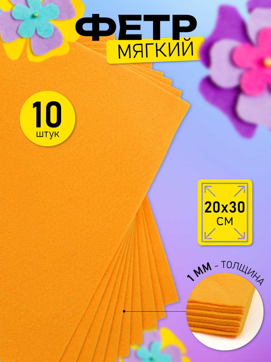10 цен на Фетр листовой мягкий Magic 4 Hobby 1мм 20х30см арт. FLT-S1 уп.10 листов цв.640/017 апельсин