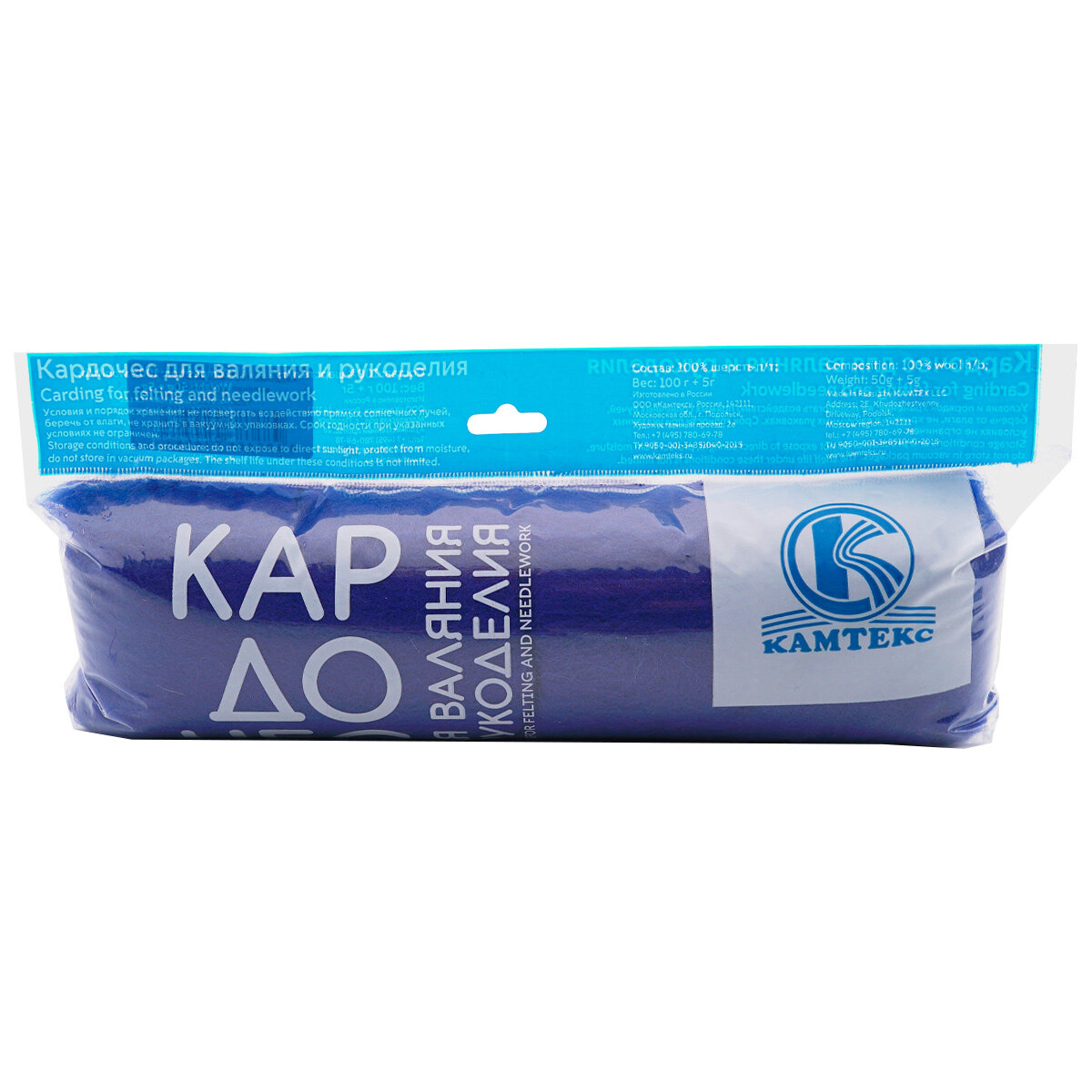 Шерсть для валяния Кардочес, 100% полутонкая шерсть, 100 г, Камтекс (173 синий)