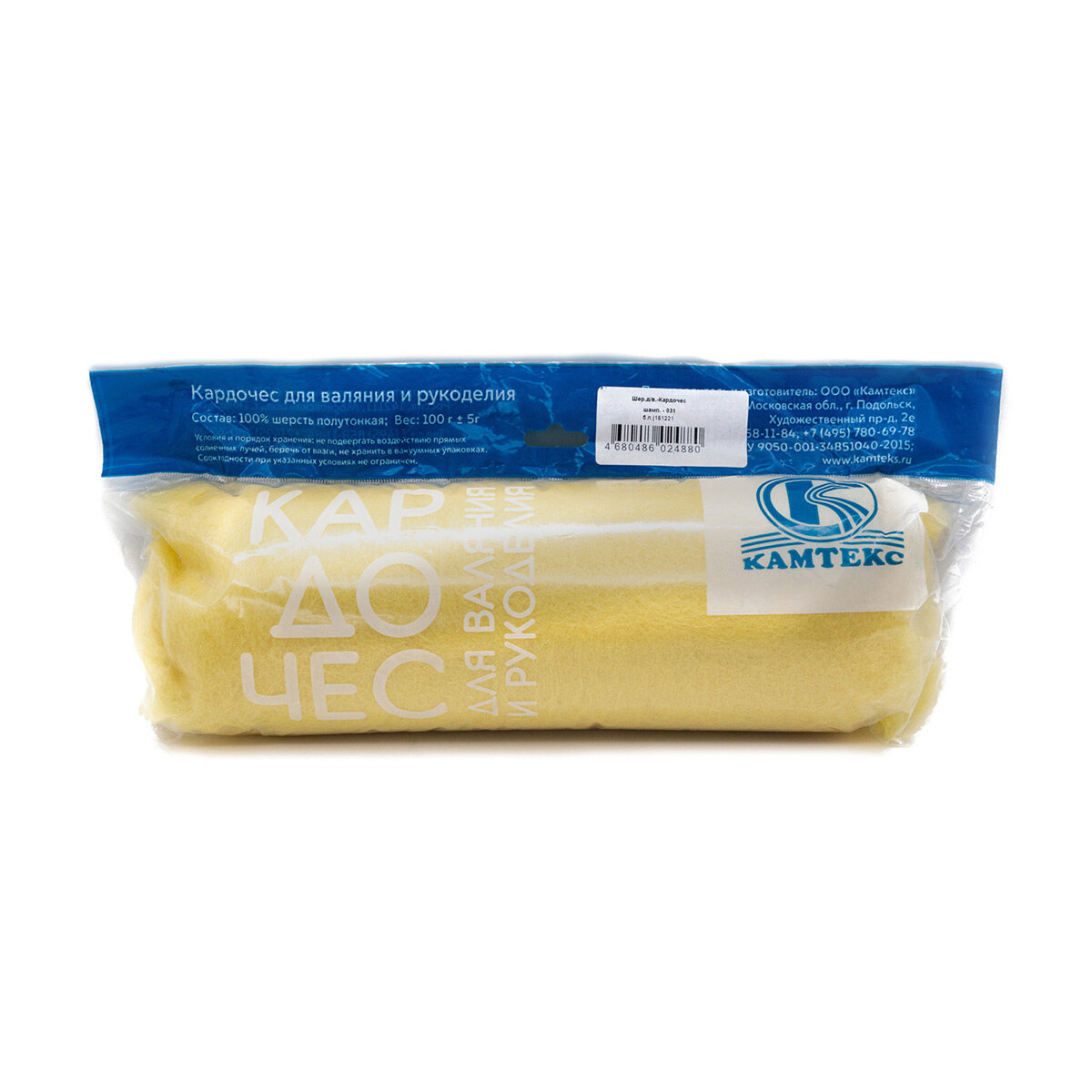 Шерсть для валяния Кардочес, 100% полутонкая шерсть, 100 г, Камтекс (031 шампанское) информация: