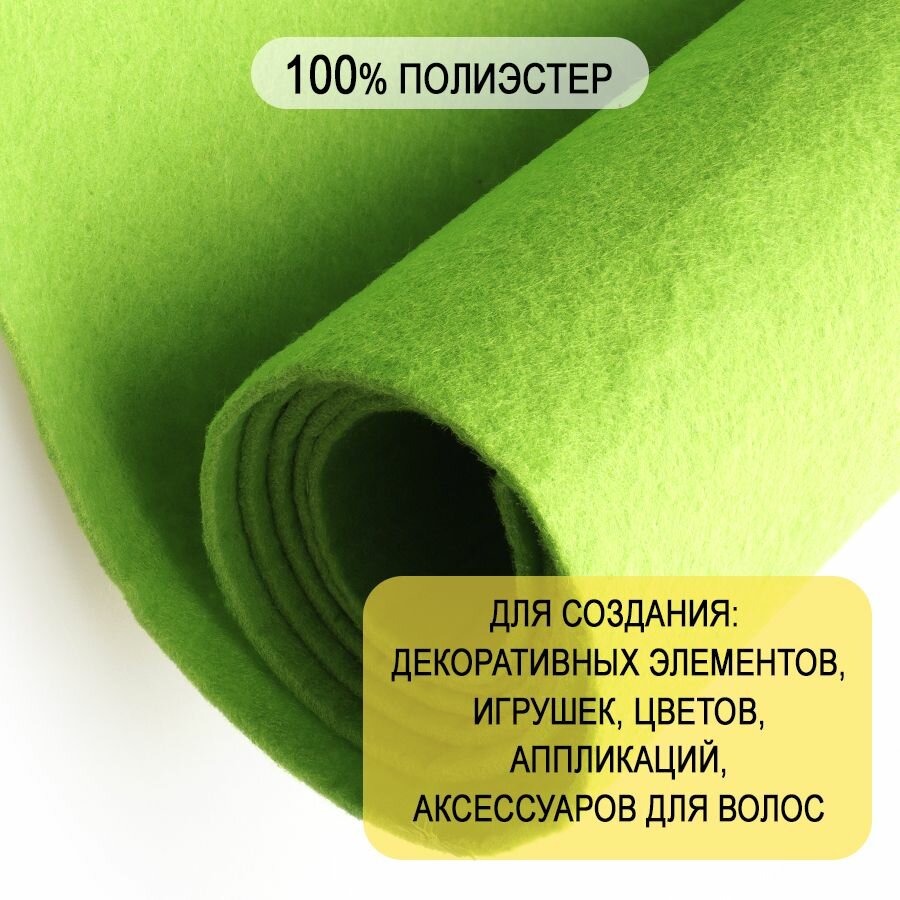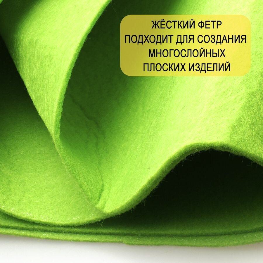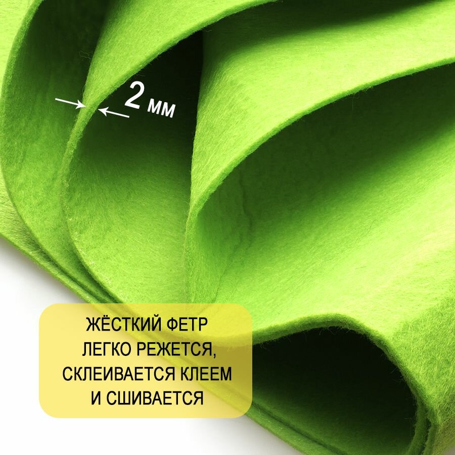 10 цен на Фетр однотонный твердый 2 мм в рулоне 100 х 100 см, салатовый С11, плотность 280г/м2