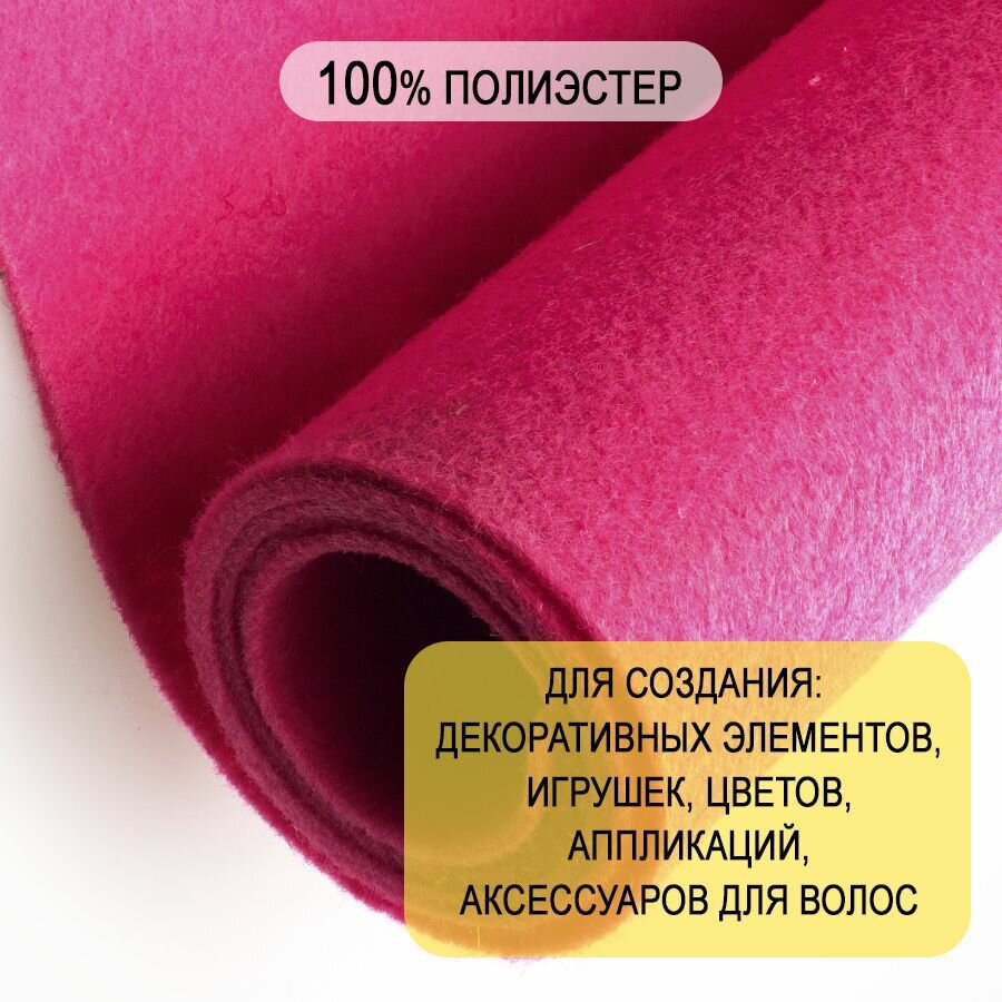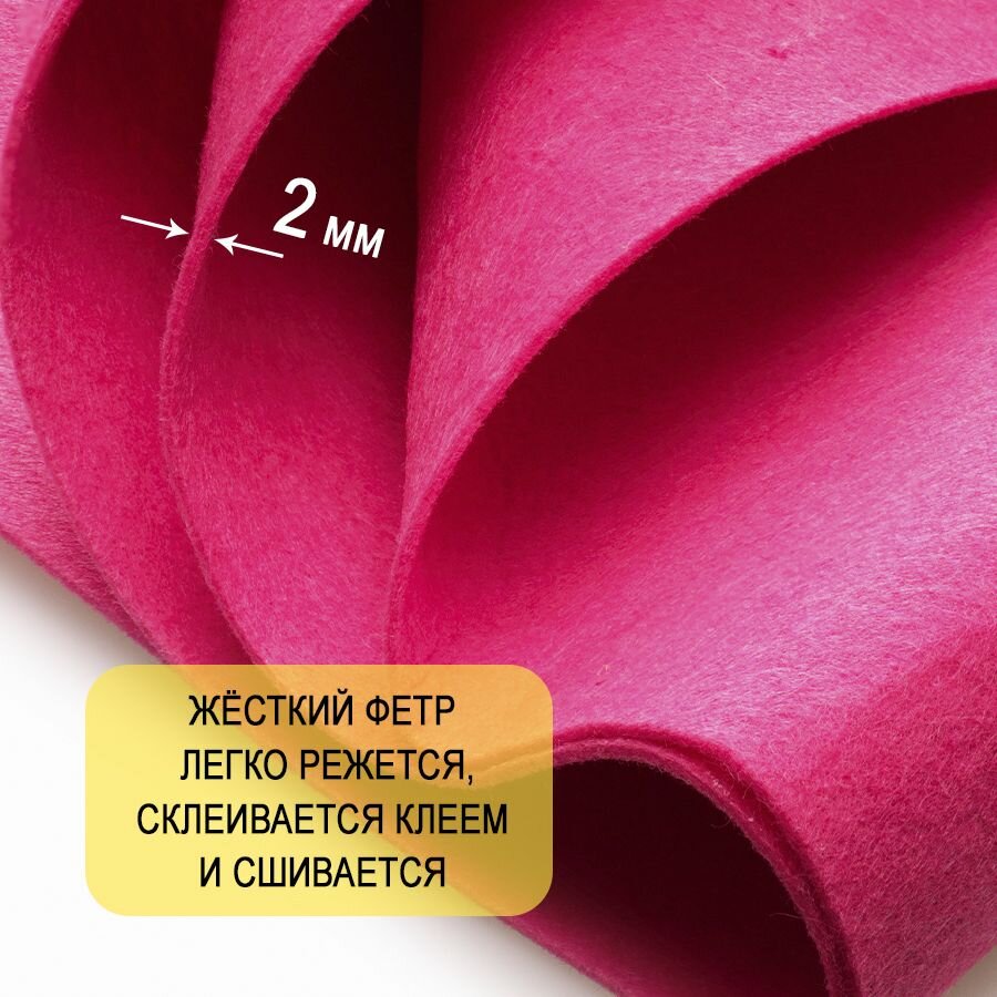 Отзывы на Фетр однотонный твердый 2 мм в рулоне 100 х 100 см, яркий розовый С21, плотность 280г/м2