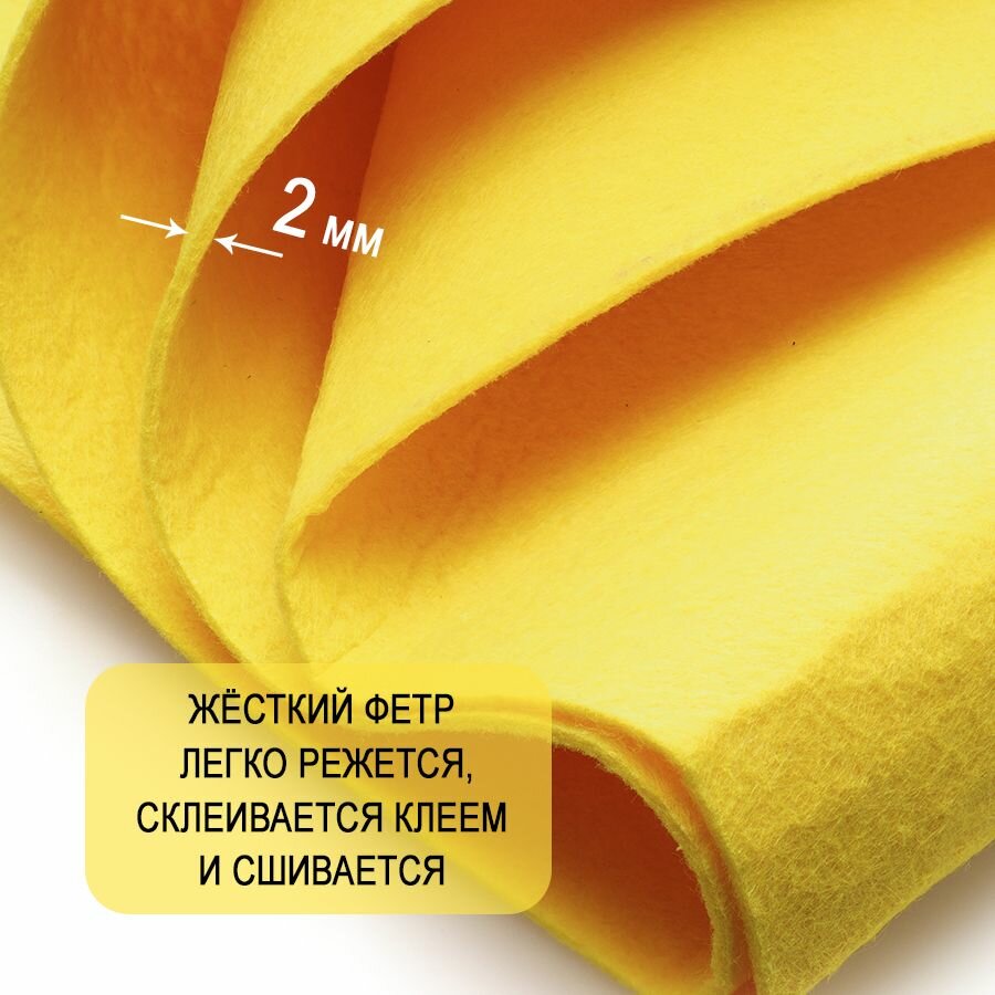 10 цен на Фетр однотонный твердый 2 мм в рулоне 100 х 100 см, светло-жёлтый С55, плотность 280г/м2