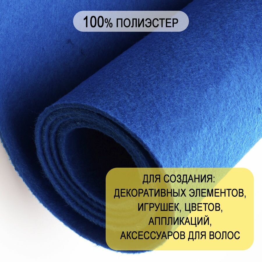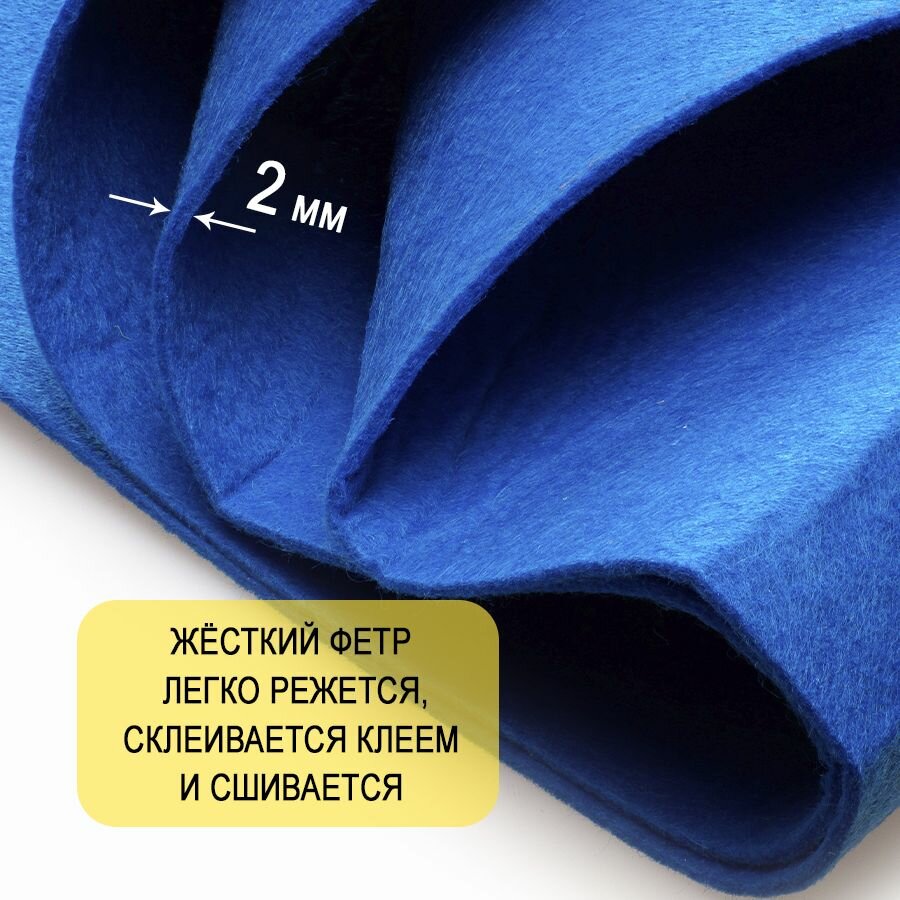 10 цен на Фетр однотонный твердый 2 мм в рулоне 100 х 100 см, синий С52, плотность 280 г/м2