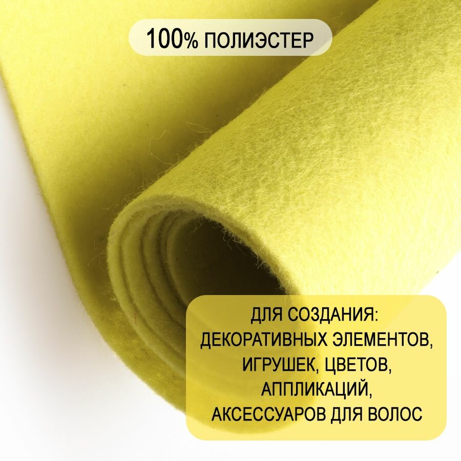 10 цен на Фетр однотонный твердый 2 мм в рулоне 100 х 100 см, лимонный С32, плотность 280 г/м2