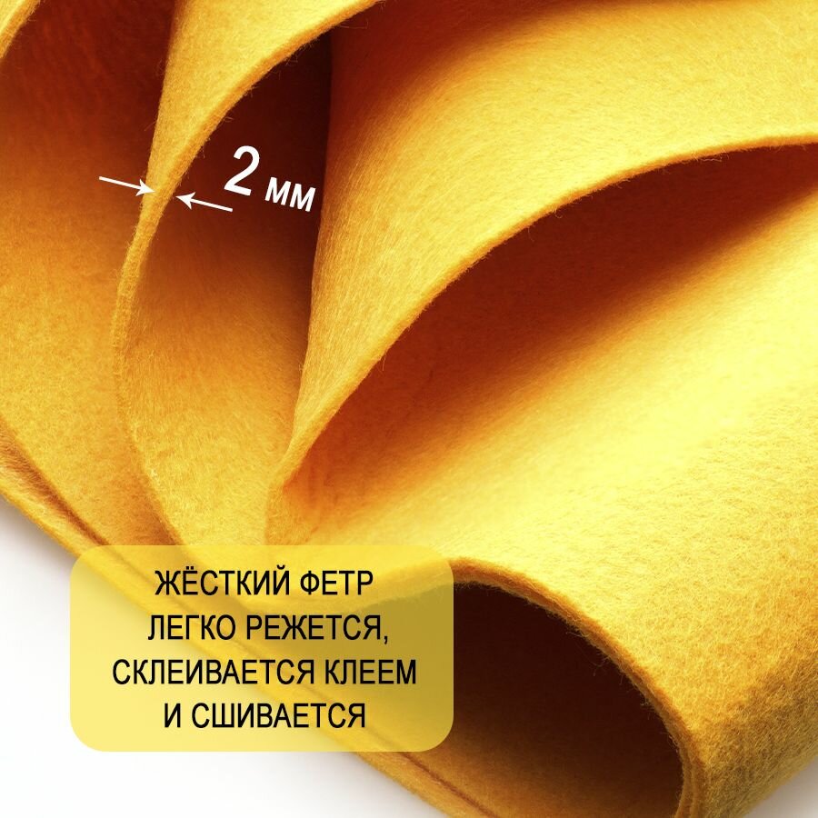 Отзывы на Фетр однотонный твердый 2 мм в рулоне 100 х 100 см, жёлтый С18, плотность 280г/м2