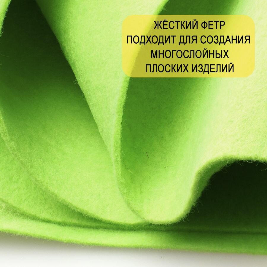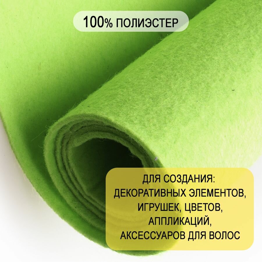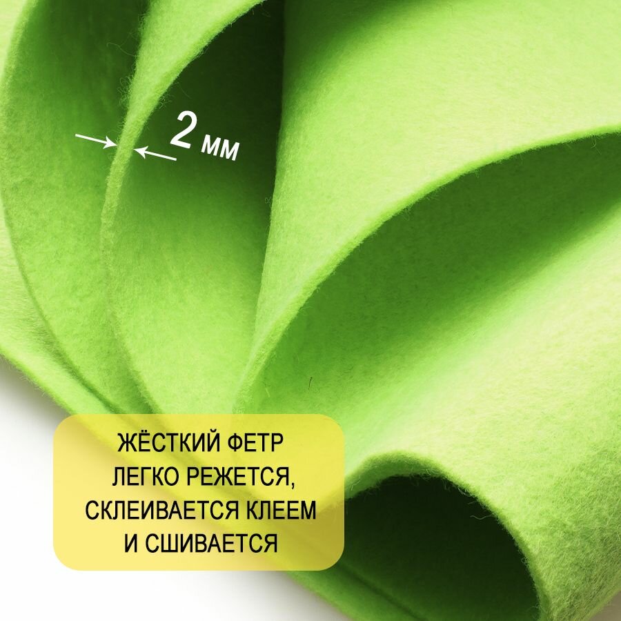 10 цен на Фетр однотонный твердый 2 мм в рулоне, 100 х 100 см, ярко-салатовый С45, плотность 280 г/м2