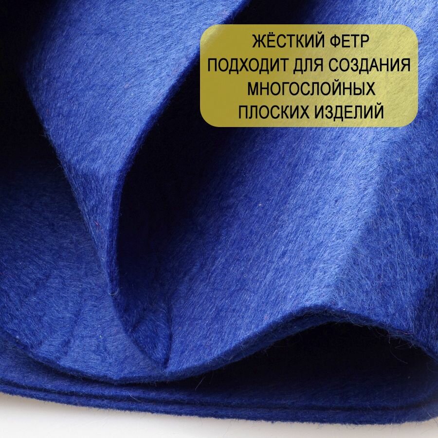 10 цен на Фетр однотонный твердый 2 мм в рулоне, 100 х 100 см, васильковый С63, плотность 280 г/м2