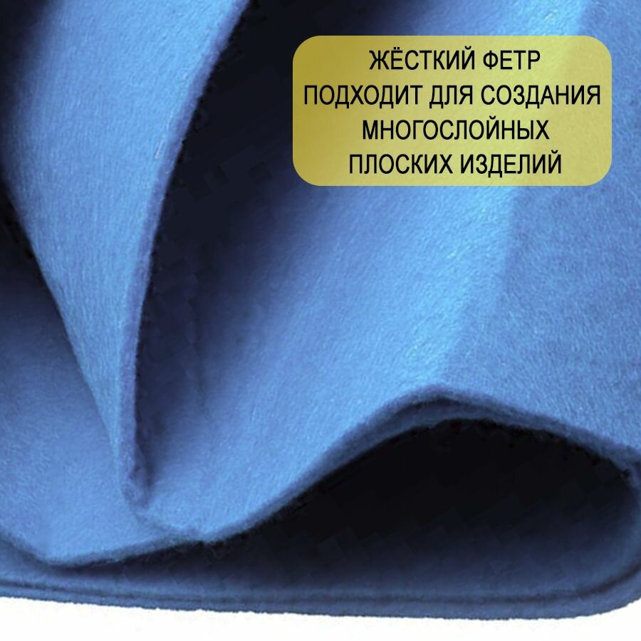 10 цен на Фетр однотонный твердый 2 мм в рулоне, 100 х 100 см, голубой С12, плотность 280 г/м2