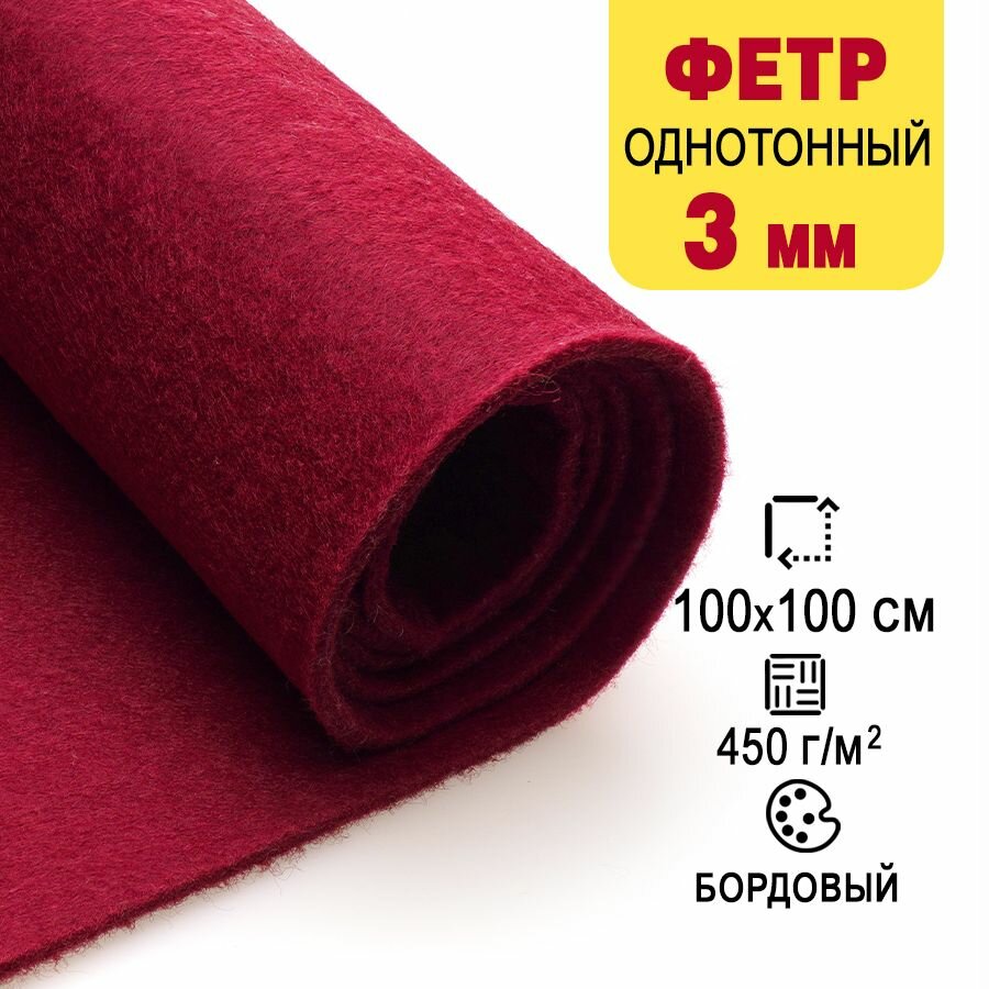 10 цен на Фетр однотонный твердый 3 мм в рулоне 100 х 100 см, бордовый С01, плотность 450 г/м2