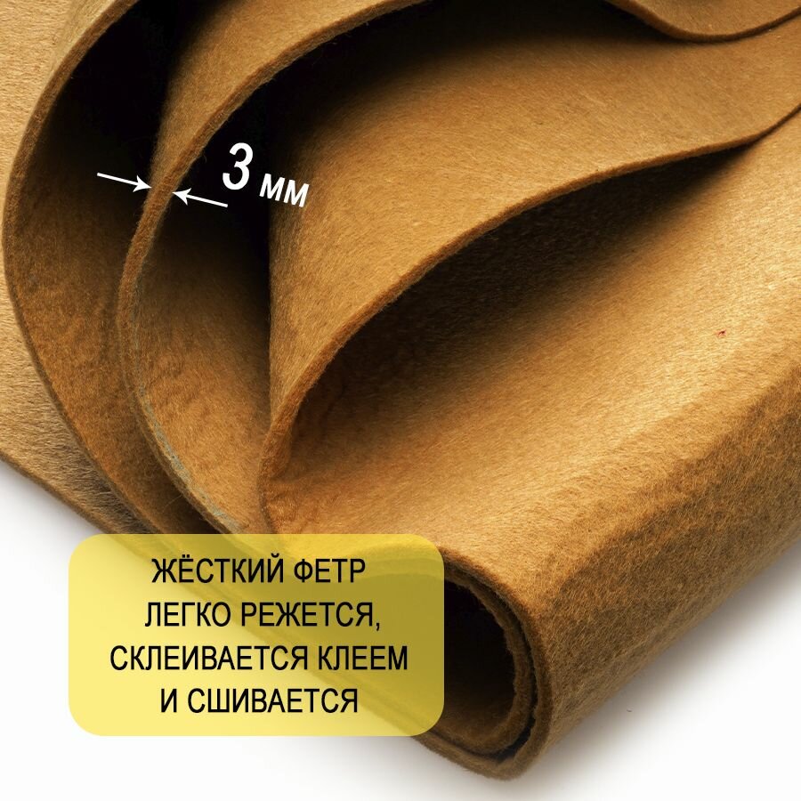 Отзывы на Фетр однотонный твердый 3 мм в рулоне 100 х 100 см, темно-бежевый С06, плотность 450 г/м2