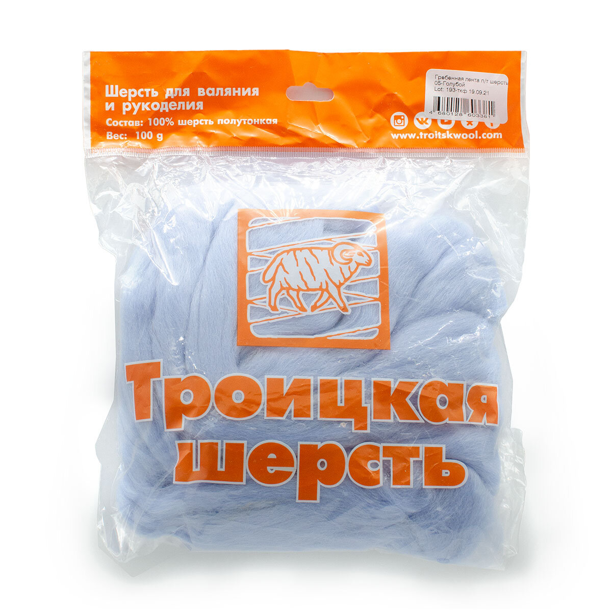 Шерсть для валяния полутонкая 100%, Пряжа из Троицка, 100 г (05 голубой) информация: