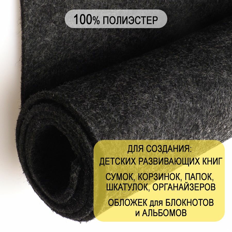 Отзывы на Фетр однотонный твердый 3 мм в рулоне 100 х 100 см, темно-мраморный С41, плотность 450 г/м2