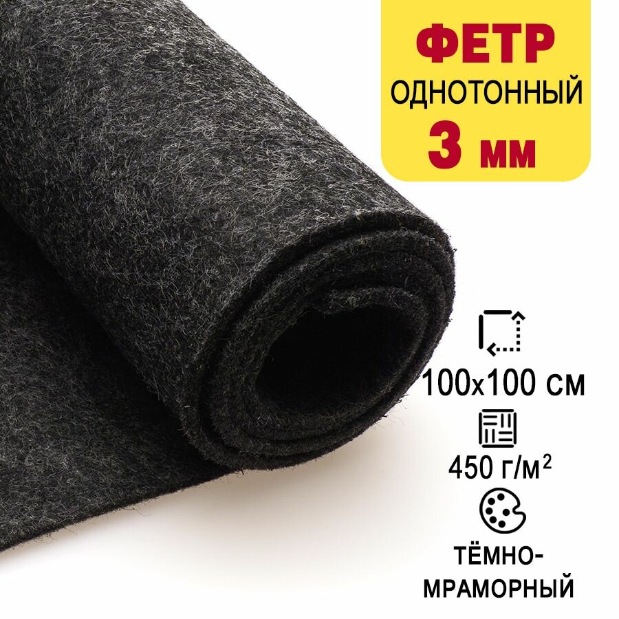10 цен на Фетр однотонный твердый 3 мм в рулоне 100 х 100 см, темно-мраморный С41, плотность 450 г/м2