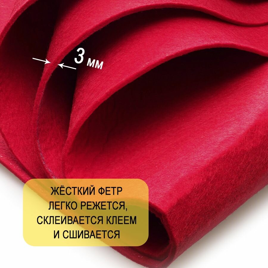 10 цен на Фетр однотонный твердый 3 мм в рулоне 100 х 100 см, красный С02, плотность 450 г/м6
