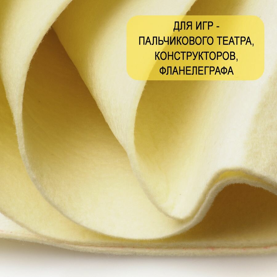 Фетр однотонный твердый 3 мм в рулоне 100 х 100 см, светло-желтый С55, плотность 450 г/м12 1 348 ₽