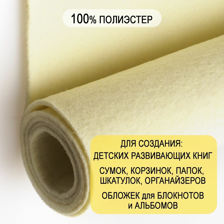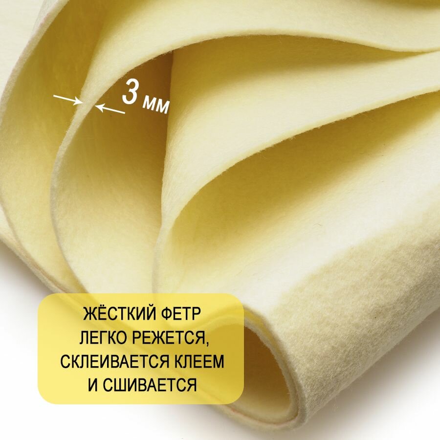 10 цен на Фетр однотонный твердый 3 мм в рулоне 100 х 100 см, молочный С09, плотность 450 г/м2