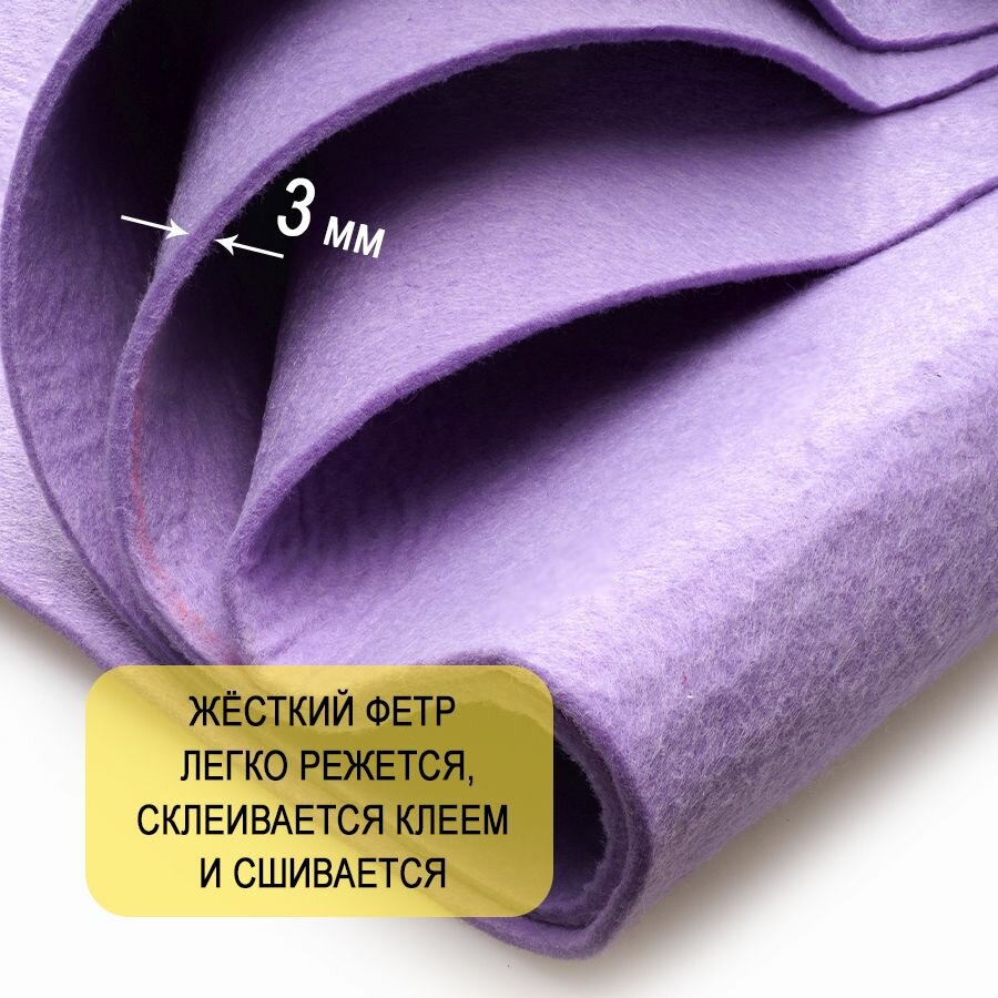 10 цен на Фетр однотонный твердый 3 мм в рулоне 100 х 100 см, сиреневый С71, плотность 450 г/м14