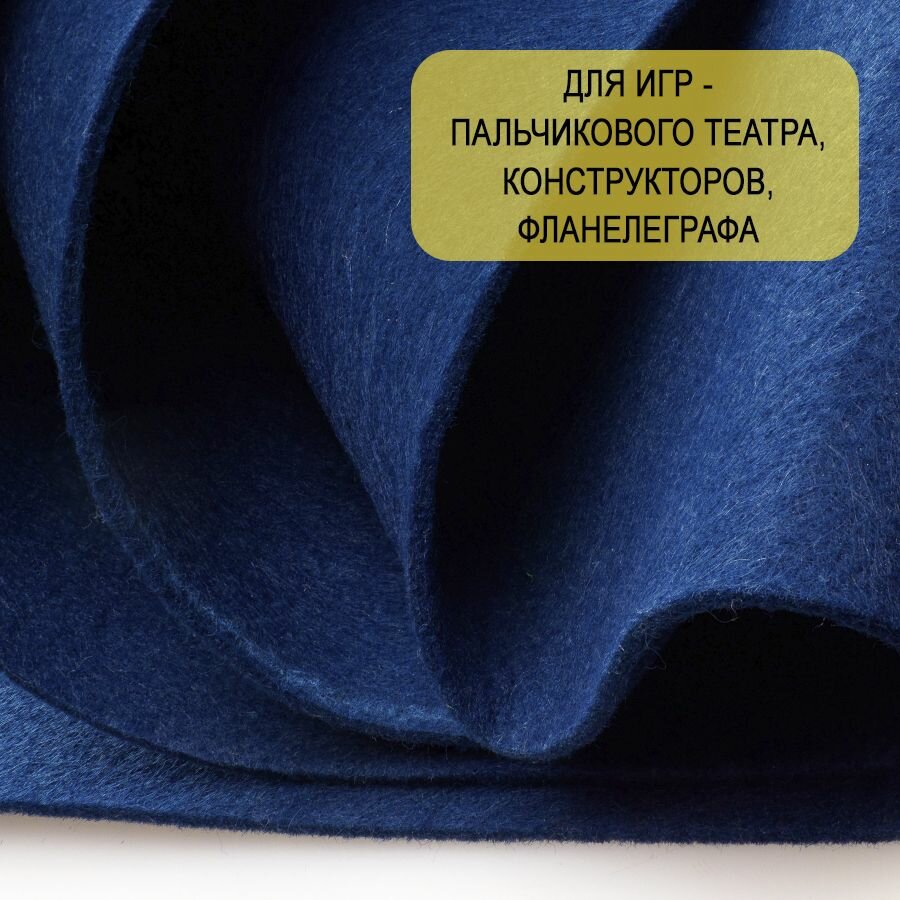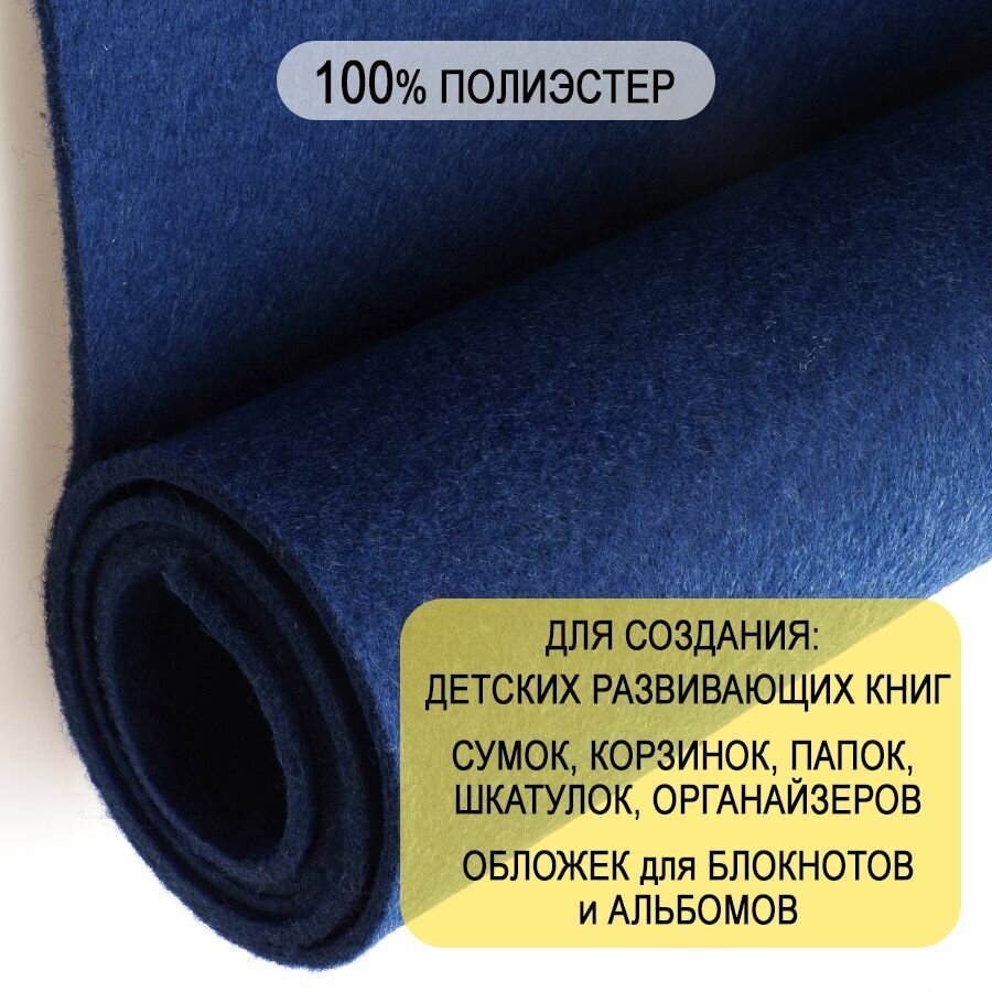 Фетр однотонный твердый 3 мм в рулоне 100 х 100 см, темно-синий С16, плотность 450 г/м16 информация: