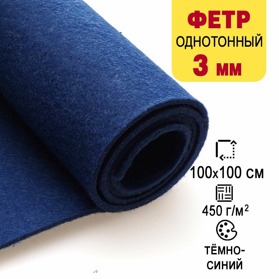 10 цен на Фетр однотонный твердый 3 мм в рулоне 100 х 100 см, темно-синий С16, плотность 450 г/м16