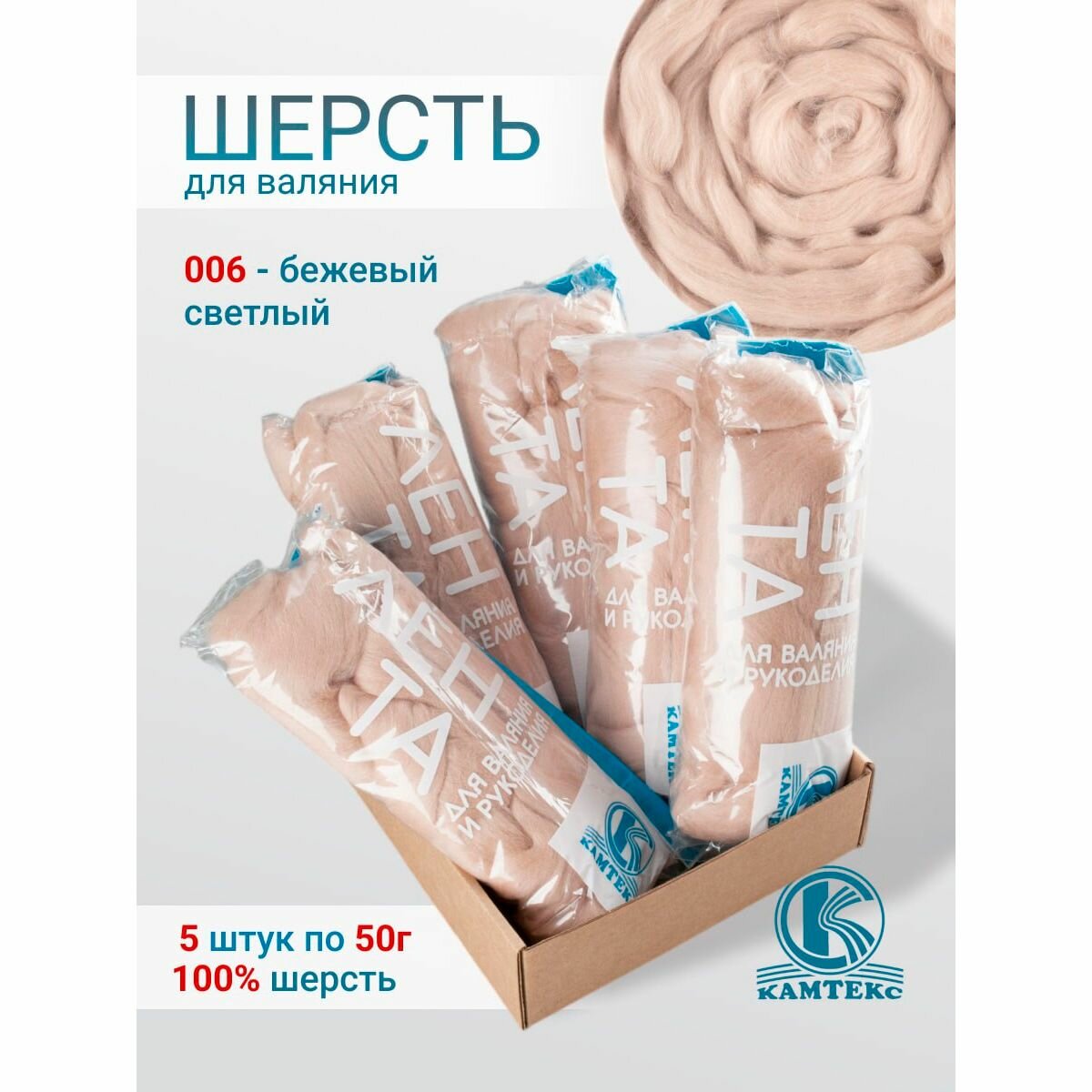 Шерсть для валяния полутонкая Камтекс (006 светло-бежевый) 5 штук по 50 г информация: