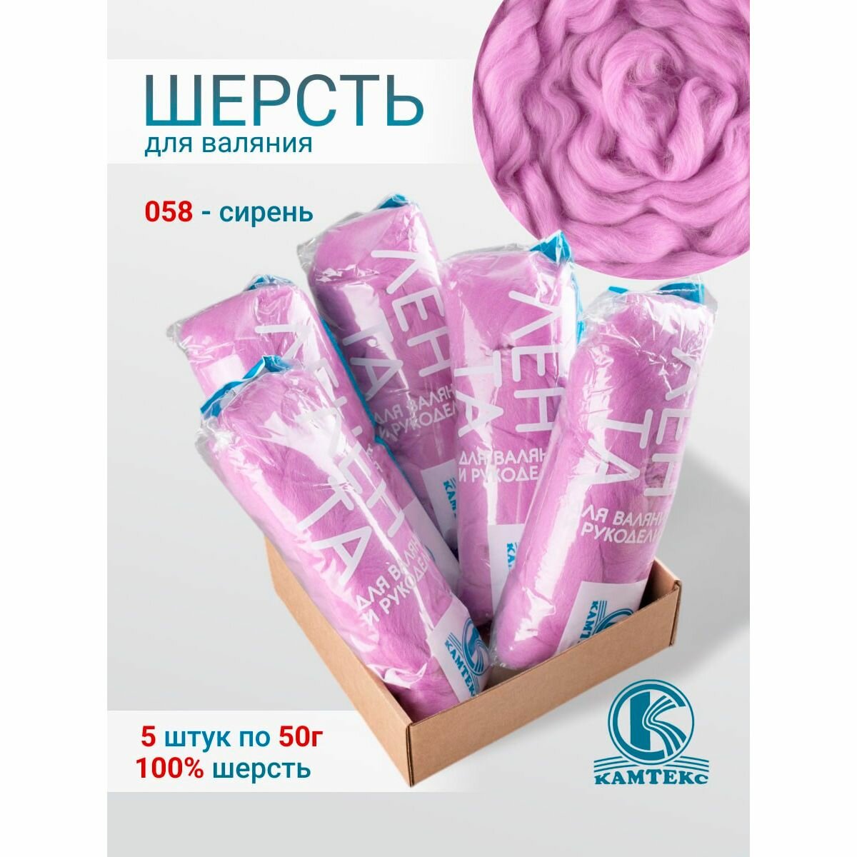 Шерсть для валяния полутонкая Камтекс (058-сирень) 5 штук по 50 г информация: