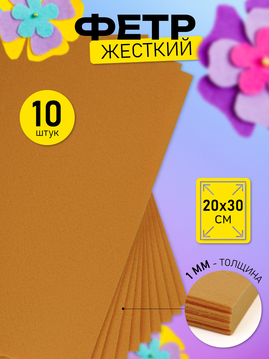 Фетр листовой жесткий IDEAL 1мм 20х30см арт. FLT-H1 уп.10 листов цв.685 св. коричневый информация: