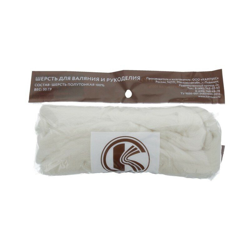 Лента для валяния полутонкая Камтекс 50 г (цвет 001 суровый) информация: