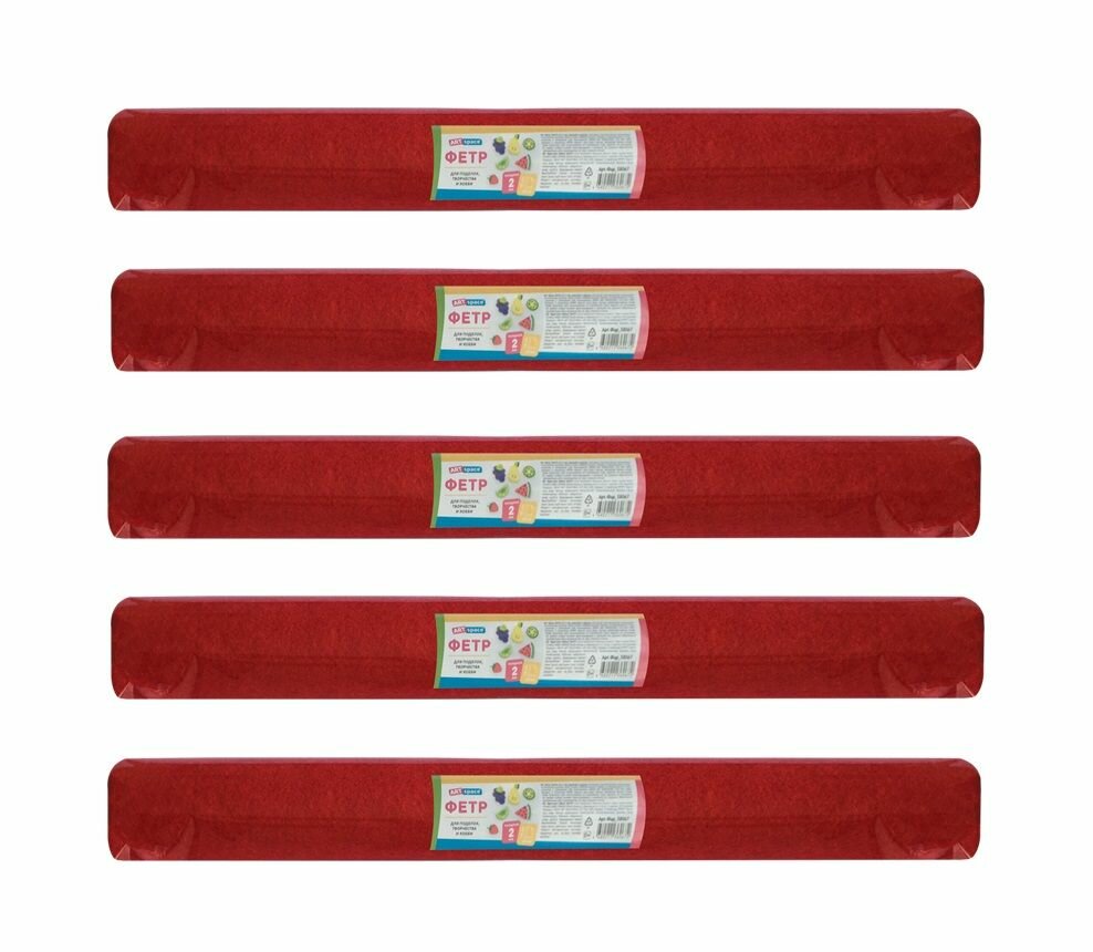 10 цен на Набор из 5 шт. - Фетр ArtSpace 50*70см, 2мм, красный, в рулоне