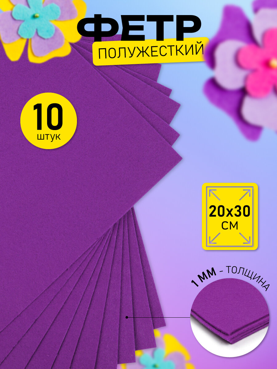 Фетр листовой полужесткий IDEAL 1мм 20х30см арт. FLT-HS1 уп.10 листов цв.113 сиреневый информация: