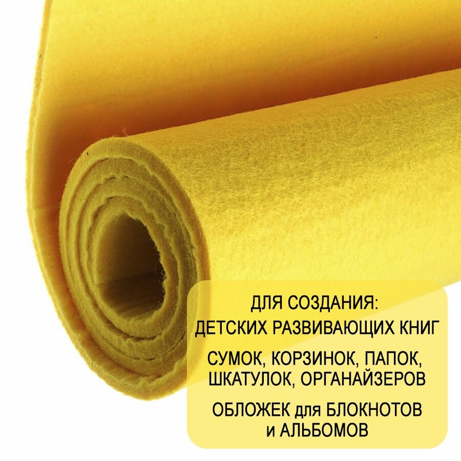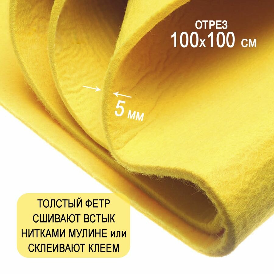 Отзывы на Фетр однотонный твердый 5 мм в рулоне 100 х 100 см, светло-желтый C55, плотность 870 г/м2