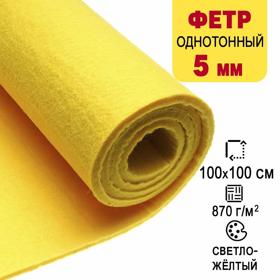 10 цен на Фетр однотонный твердый 5 мм в рулоне 100 х 100 см, светло-желтый C55, плотность 870 г/м2
