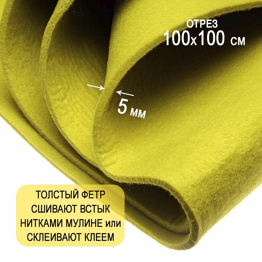 10 цен на Фетр однотонный твердый 5 мм в рулоне 100 х 100 см, светло-зеленый C39, плотность 870 г/м2