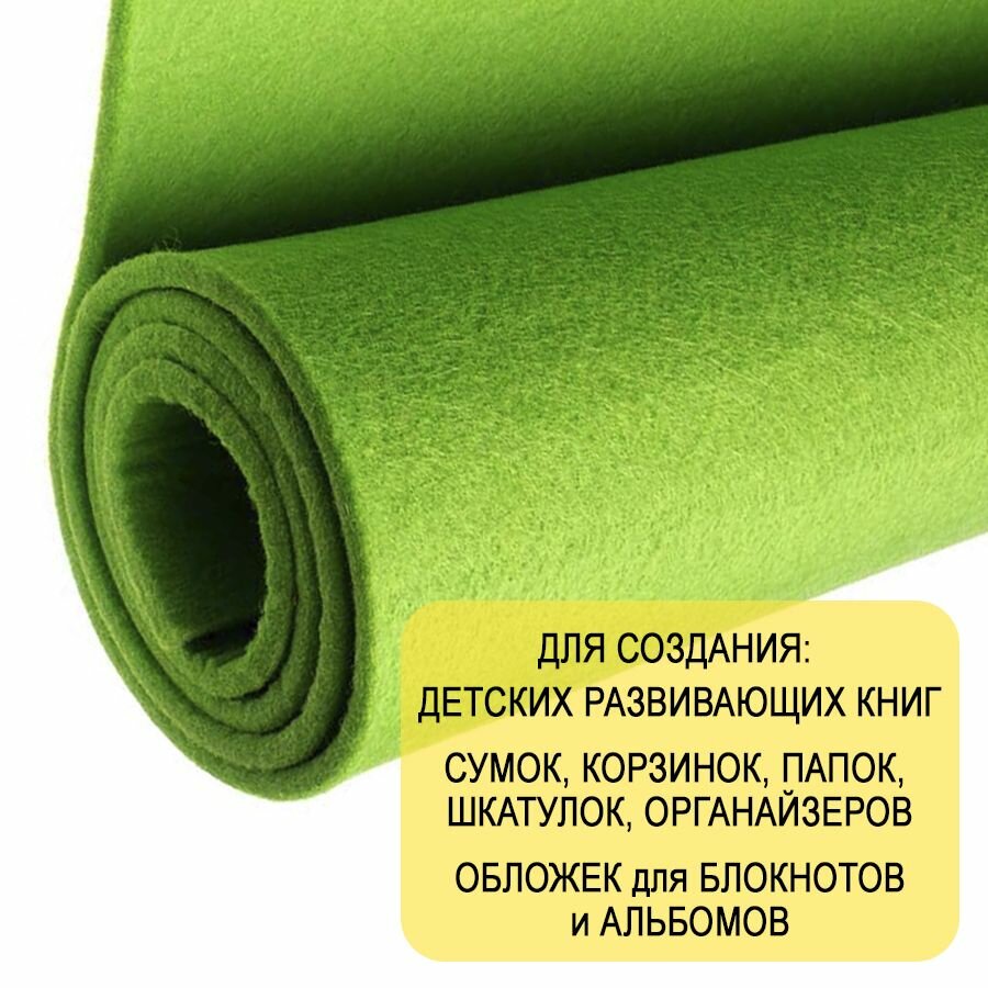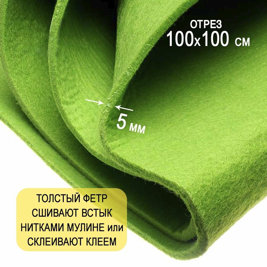 Отзывы на Фетр однотонный твердый 5 мм в рулоне 100 х 100 см, салатовый C11, плотность 870 г/м2
