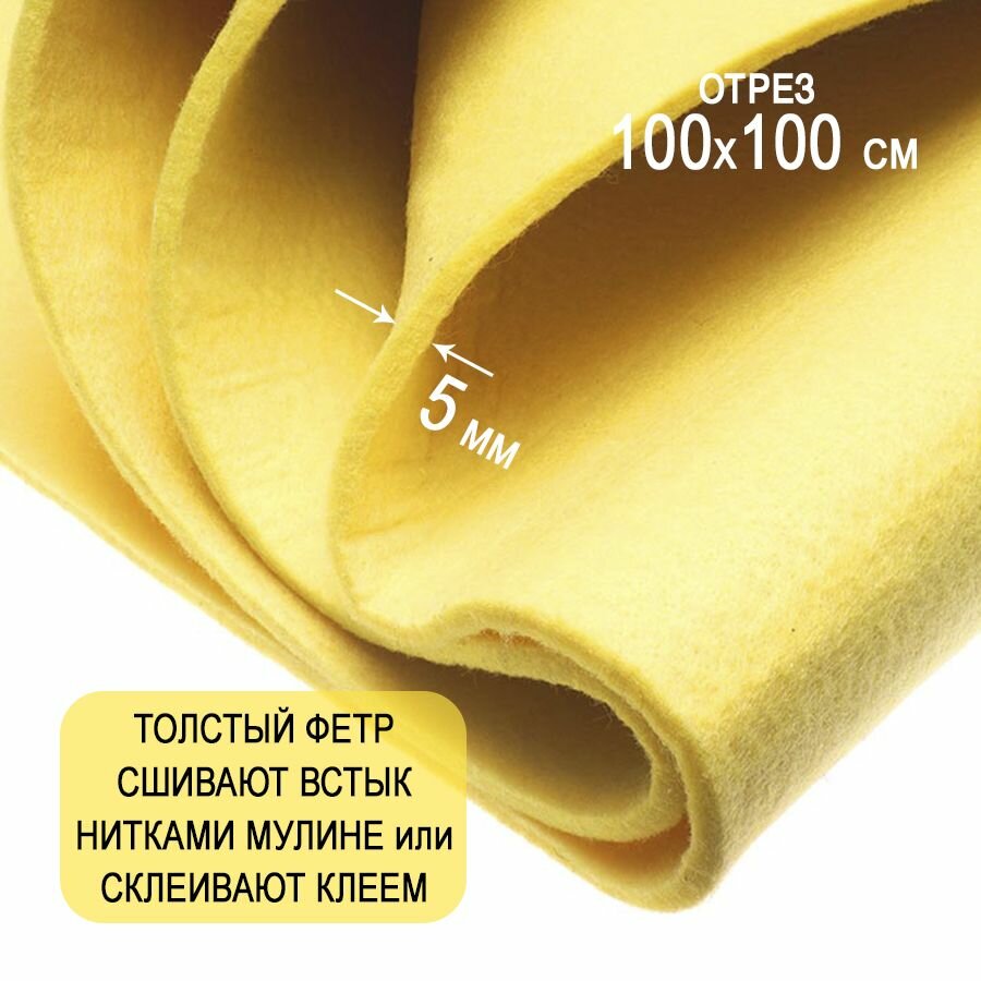 10 цен на Фетр однотонный твердый 5 мм в рулоне 100 х 100 см, желтый C25, плотность 870 г/м2